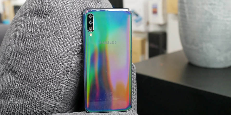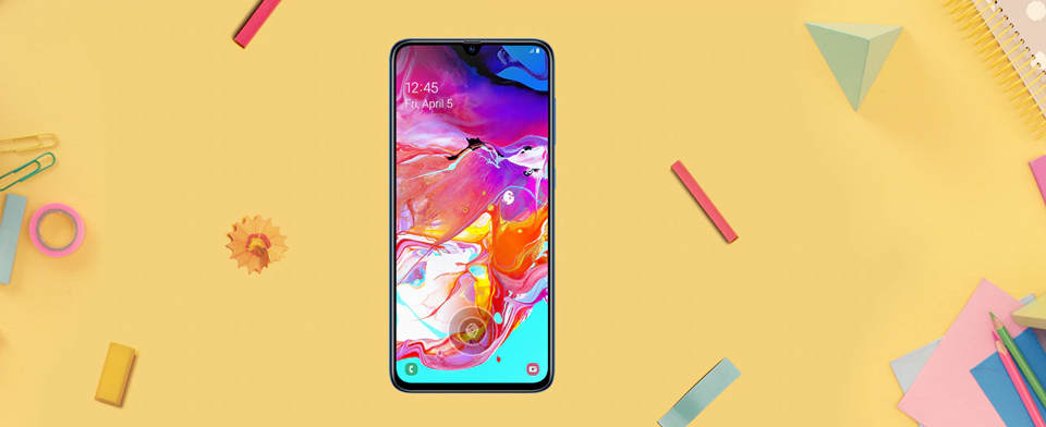 گوشی سامسونگ گلکسی A70 از سبک طراحی دیگر گوشی های سری گلکسی A 2019 سامسونگ پیروی می‌کند با این تفاوت که ابعاد و اندازه بزرگ‌تری دارد و به نظر می‌رسد قاب پشت آن براق‌تر طراحی شده است. دو لبه سمت راست و چپ قاب پشت گوشی کمی خمیده هستند و این امر منجر به خوش دست تر شدن دستگاه می‌شود. در گوشه سمت چپ و فوقانی قاب پشت آن هم لنز دوربین سه گانه و چراغ فلش LED اختصاصی آن تعبیه شده است. با توجه به اینکه در قاب پشت دستگاه هیچ اسکنر انگشتی وجود ندارد، شاید این سوال در ذهنتان ایجاد شود که آنلاک گوشی چگونه انجام خواهد شد؟ سامسونگ گوشی گلکسی A70 را به نمایشگری مجهز کرده که مثل سری گوشی های گلکسی S10 از قابلیت اسکن انگشت کاربر و آنلاک صفحه نمایش پشتیبانی می‌کند. صفحه نمایش این گوشی ۶٫۷ اینچی است و به لطف حاشیه های باریکی که دارد، تقریبا ۸۶ درصد از کل مساحت پنل جلوی دستگاه را در بر می‌گیرد. روی لبه فوقانی نمایشگر گوشی یک زائده کوچک U شکل نصب است که لنز دوربین سلفی گوشی در آن قسمت نصب می‌شود و اصطلاحا به آن ناچ (Notch) می‌گوییم. سامسونگ روی صفحه نمایش این گوشی را با یک لایه گلس محافظ هم پوشانده است. سری گوشی های سامسونگ گلکسی A 2019 همگی از نظر سیستم عامل و رابط کاربری وضعیت یکسانی دارند. گوشی گلکسی A70 هم مثل دیگر گوشی های این سری به طور پیش فرض از اندروید ۹ پای (Android 9 Pie) بهره می‌برد و رابط کاربری One UI سامسونگ هم در کنار آن نصب و راه‌اندازی شده است. تراشه‌ای که در قلب این اسمارتفون بکار رفته، تراشه اسنپدراگون ۶۷۵ کوالکام است که از لیتوگرافی ۱۱ نانومتری بهره می‌برد و یکی از جدیدترین تراشه های میان رده رو به بالای کوالکام محسوب می‌شود. پردازنده مرکزی این تراشه از هشت هسته پردازشگر تشکیل شده که شش مورد آن ها از نوع Kyro 460 Silver هستند و فرکانس کاری ۱٫۷ گیگاهرتزی دارند. دو هسته پردازشگر دیگر تراشه هم از نوع Kyro 460 Gold خواهند بود و فرکانس کاری ۲ گیگاهرتزی را ارائه می‌کنند. پردازنده گرافیکی Adreno 620 هم در این تراشه وظیفه تجزیه و تحلیل داده های گرافیکی را بر عهده خواهد داشت. دوربین اصلی این گوشی از سه لنز ۳۲، ۸ و ۵ مگاپیکسلی تشکیل شده که به ترتیب از نوع واید (Wide)، اولتراواید (Ultrawide) و عمقی (Depth) هستند. لنز دوربین واید ۳۲ مگاپیکسلی گوشی دیافراگم F/1.7 دارد. لنز دوربین اولتراواید ۸ مگاپیکسلی آن از دیافراگم F/2.2 بهره می‌برد و لنز دوربین عمقی ۵ مگاپیکسلی آن هم دیافراگم F/2.2 را ارائه می‌کند. دوربین اصلی این گوشی از یک چراغ فلش LED بهره‌مند است و از قابلیت هایی مثل فوکوس خودکار مرحله‌ای (PDAF)، عکسبرداری پانوراما، HDR، عکسبرداری پرتره، عکسبرداری با زاویه دید گسترده و ضبط ویدئو های ۴K با فریم ریت ۳۰ فریم در هر ثانیه پشتیبانی به عمل می‌آورد.